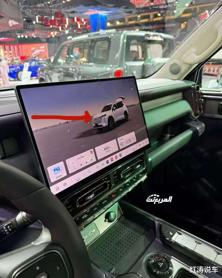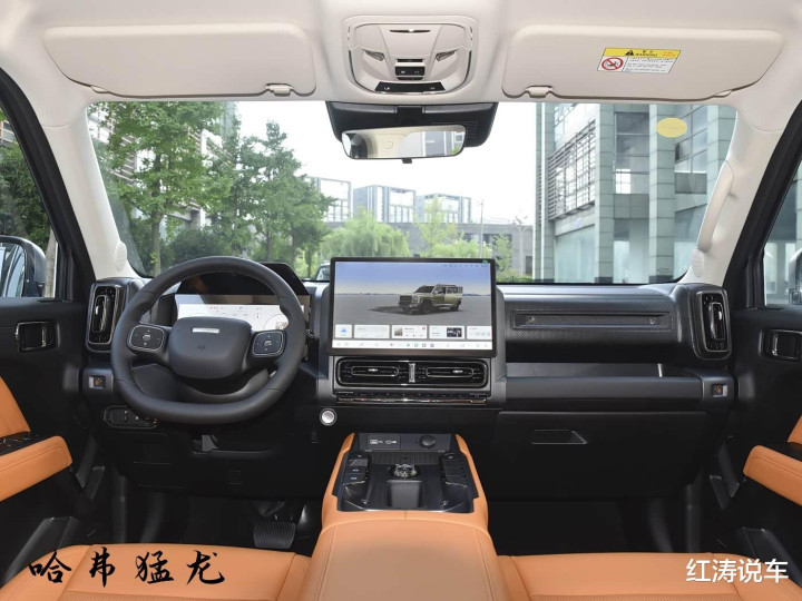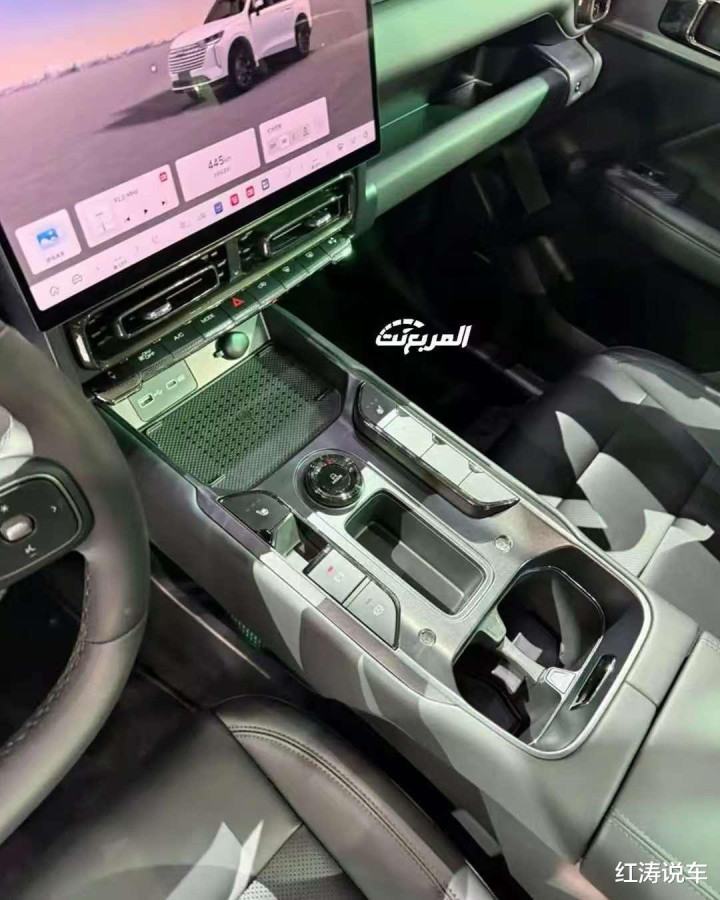 哈弗V7的内饰同样沿用2026款哈弗猛龙PHEV的设计,将越野元素和科技元素很好的结合在一起,副仪表台前方有开放式储物槽和铆钉元素,配备双辐式多功能方向盘,采用电子怀挡机构(个人觉得使用类似坦克300上面的挡杆会更显硬派),拥有液晶仪表和悬浮式中控大屏,作为参考,2026款哈弗猛龙PHEV搭载的是Coffee OS车机系统,支持联网、OTA升级、手机APP远程控制、语音双区域唤醒识别、声纹识别、应用商店等,不过有些奇怪的是,哈弗V7的界面显示居然是哈弗H6的车型动画?这是搞得什么呢???而咱们国内的就是2026哈弗猛龙PHEV的车型动画。