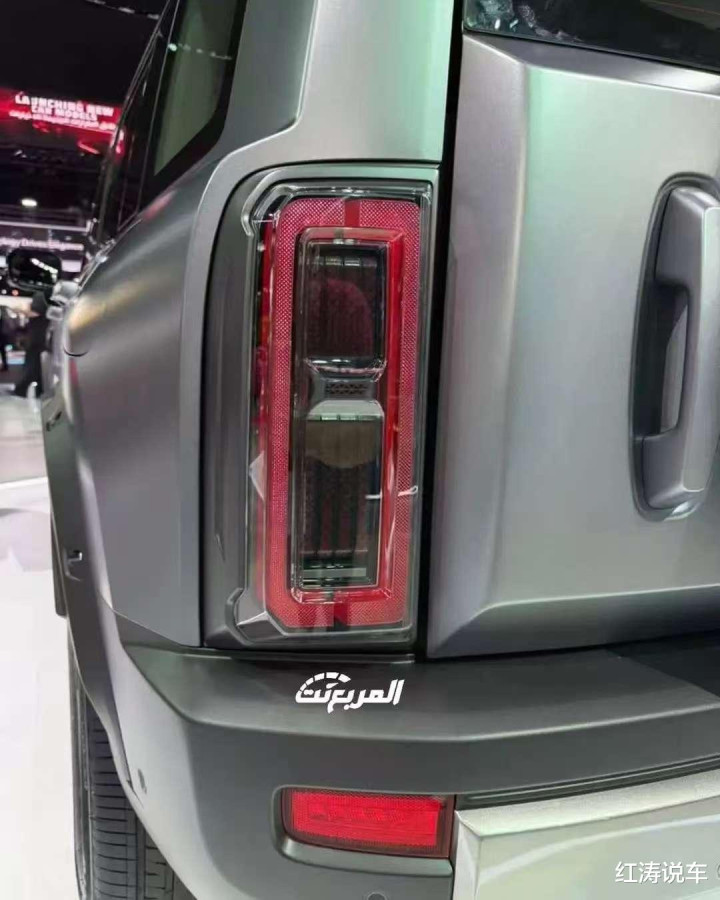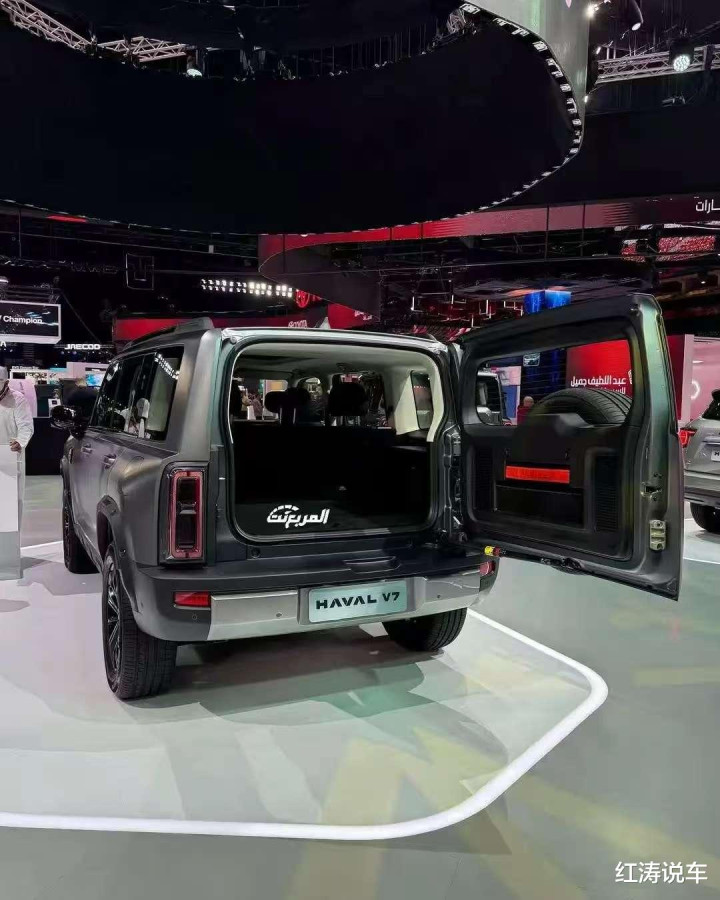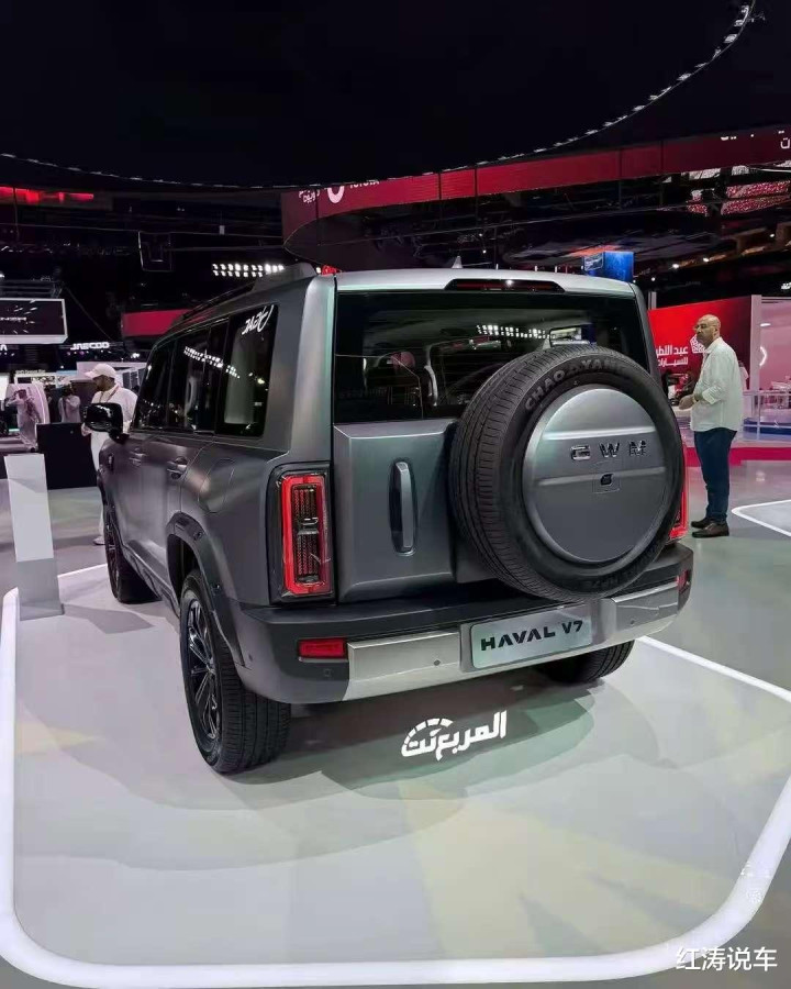 哈弗V7的尾部造型和2026款哈弗猛龙PHEV也是一样的,采用侧开式尾门,配备外挂式备胎,纵向布局的尾灯使用熏黑灯罩,内部构造清晰可见,LED光源点亮后很醒目,车顶末端设有高位刹车灯,底部后包围有金属护板。